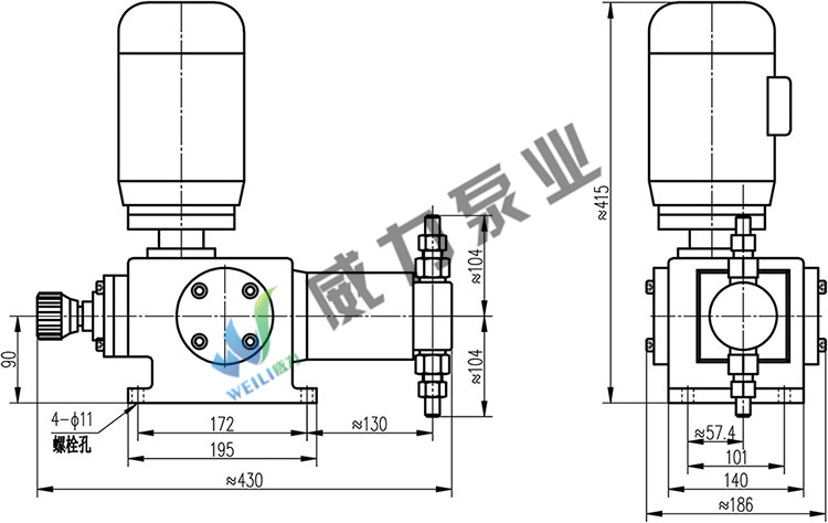 | 型號 | 流量 (L/h) | 電機功率 | 柱塞直徑 (mm) | 行程 (mm) | 泵速 (min-1) | 進出口 直徑DN (mm) | 重量(kg) |